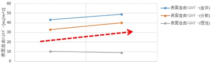 - 分散成分:39.9mJ/㎡⇒37.1mJ/㎡