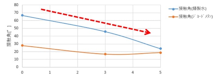 ドライ洗浄による接触角変化(洗浄パターン1)
