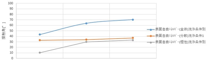- 洗浄条件別の表面自由エネルギー(全体)の変化
